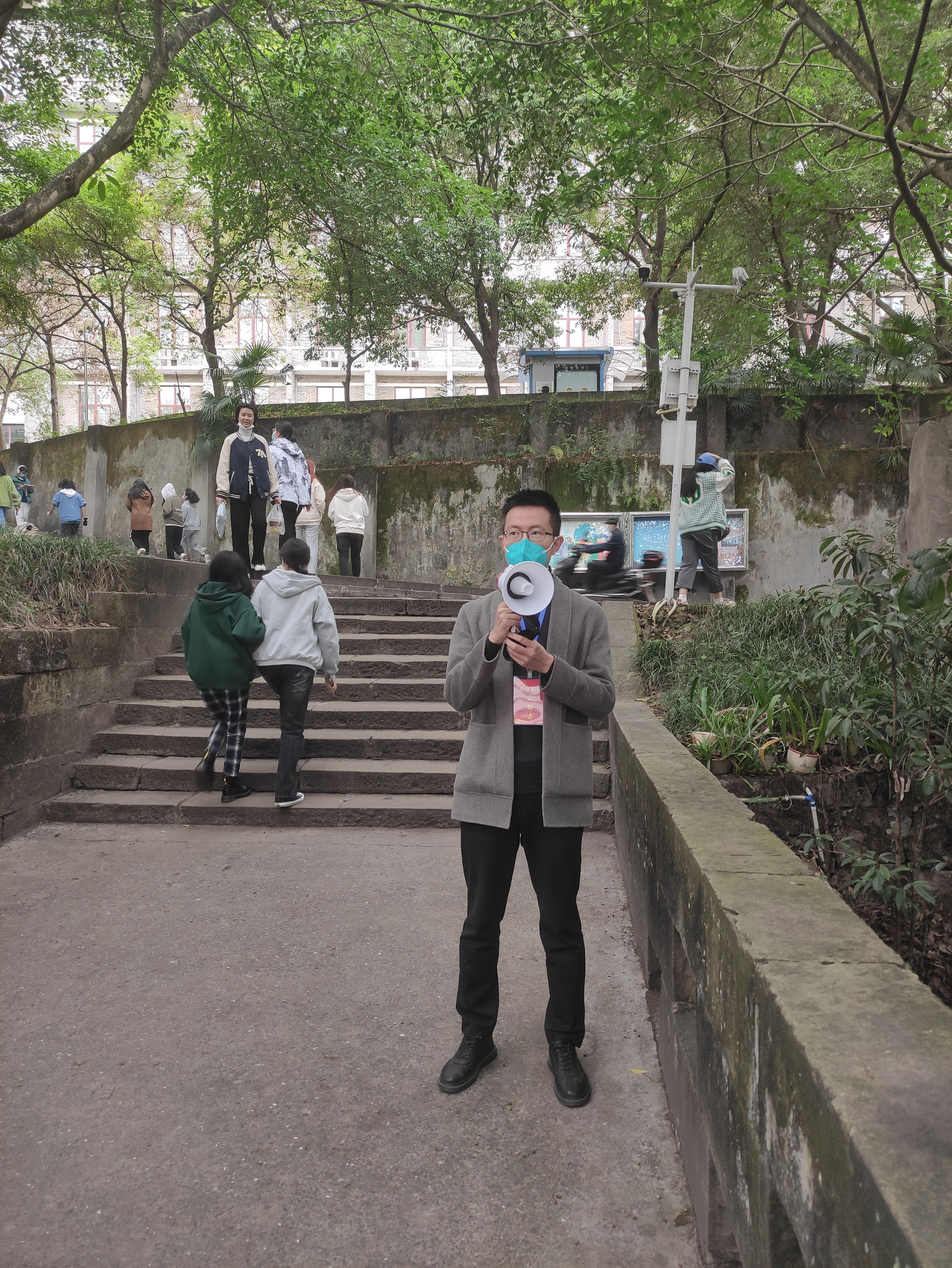与此同时,学院院长邹芙都教授每天电话联系在校内参与志愿者服务同志们的情况,问询有什么需要,关心吃住问题,了解学生情绪和心理状况等等。副书记罗朝斌同志每天与辅导员电话或微信交流,了解学生状况,指导做好学生教育引导和安抚稳定工作。副院长李晶坚守教学一线,联系协调线上教学和学生线上学习,整个教学井然有序。此外,学院正好有40余名校外学员在校内参加学习培训,面对突如其来的疫情,校园被封控,来自四川绵阳一线村镇的几十名基层干部,出不了校园,回不到自己的工作岗位,心急如焚,副院长王勇与学院主要领导多次商议,积极与参训学员和学员当地部门联系沟通,做好解释、安抚工作,赢得了理解和配合。学院办公室的同志们和组织员等也不停息,每天组织教职工核酸检测,宣讲防疫政策,统计报送相关信息,为校内师生运送防疫物资和生活用品及药品。