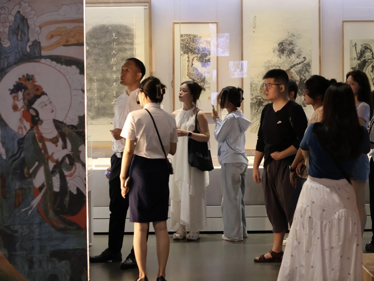 纪念馆内,团队成员在讲解员的带领下深入了解张大千的艺术人生:启蒙于母亲,滋养于甜城沃土。张大千深厚的爱国情怀亦令人动容——抗战期间多次办展募资支援前线,并将敦煌临摹画展的部分收益捐作抗战救国经费,“大千精神”尽显艺术追求与家国担当。