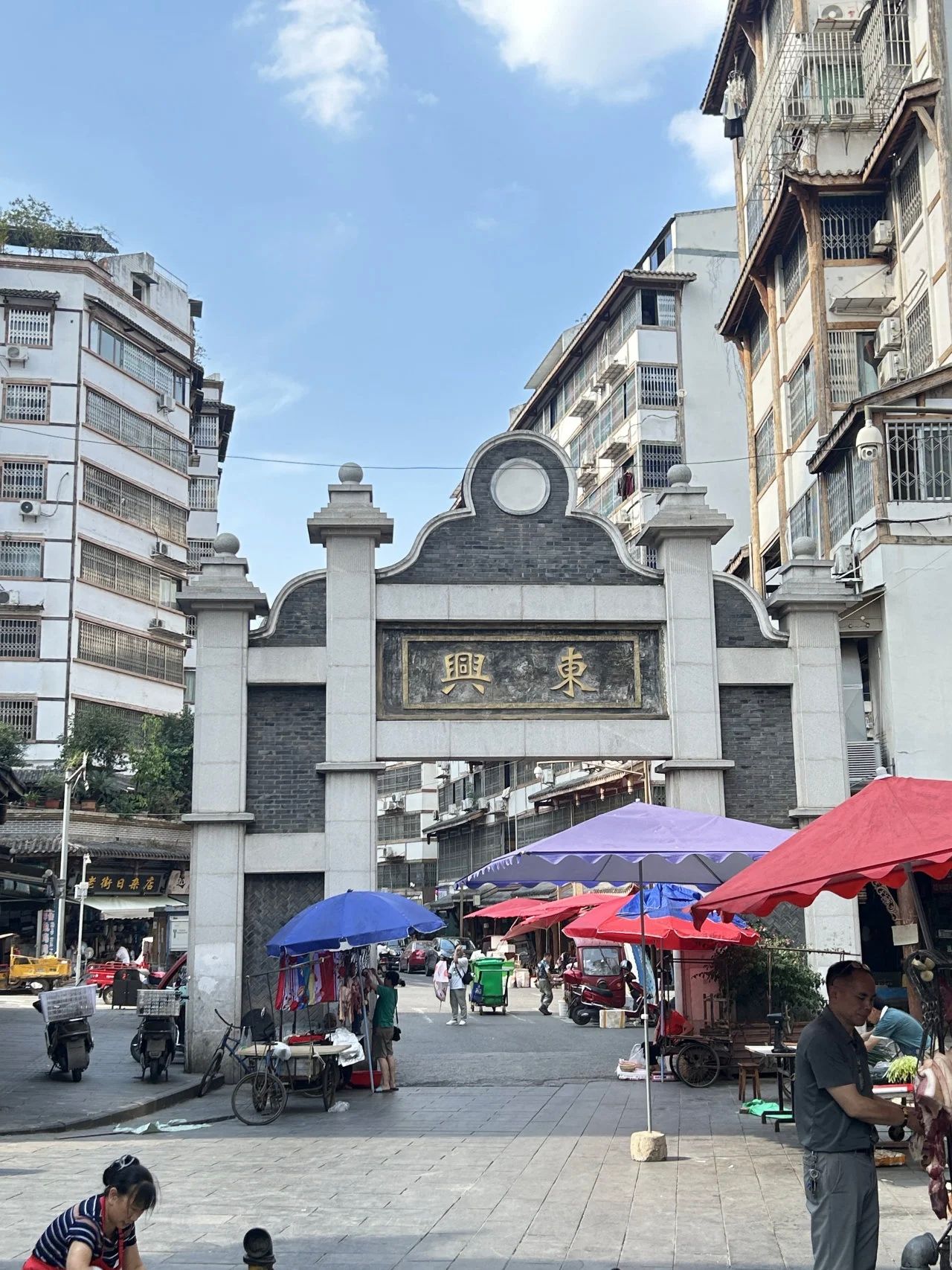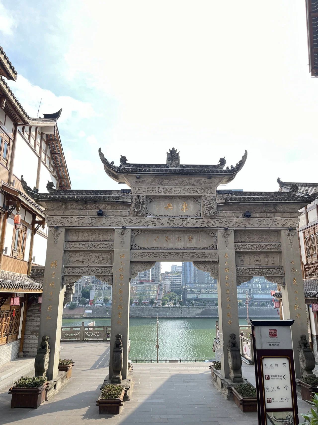 图5—8:东兴街区牌楼及铜像