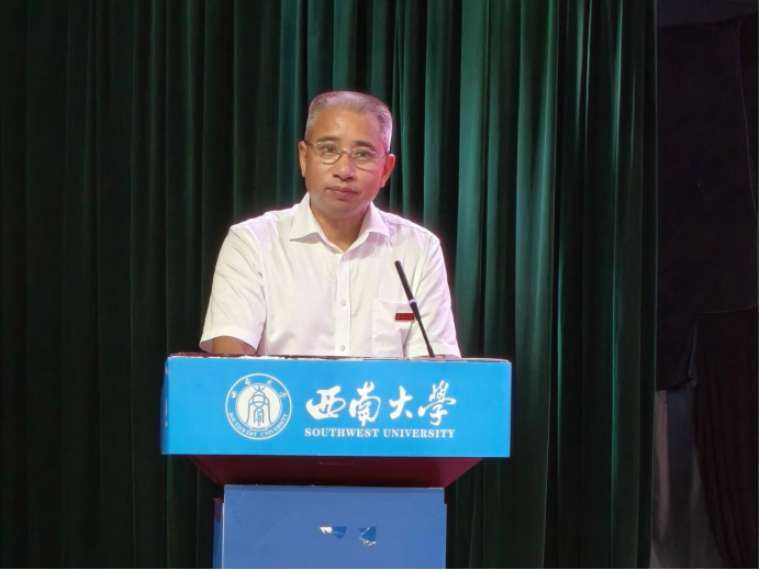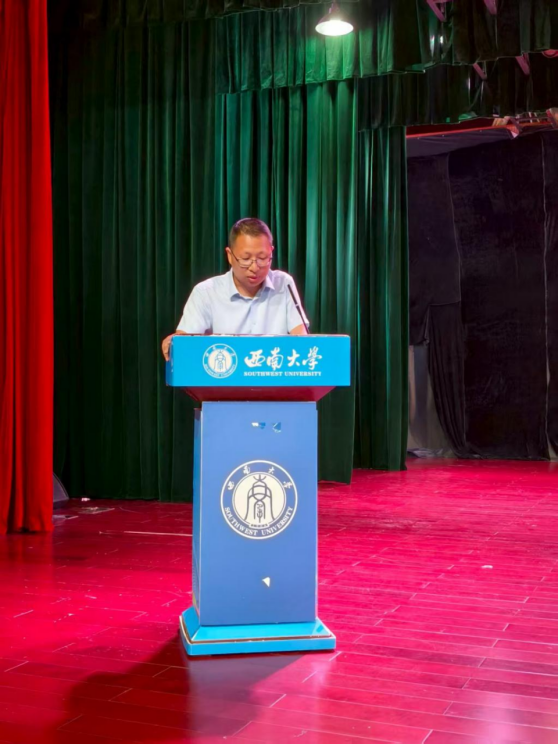 学院党委书记罗庆昌为新生作寄语讲话。他回顾学院发展历程,介绍学科体系与办学特色。勉励新生要规划好学业与人生,深化专业认知维度,拓展学术视野广度;期望2025级新生传承践行“含弘光大、继往开来”的校训和“进学 修德 会通 超胜”的院训,勇担时代使命,努力成长为堪当民族复兴大任的时代新人。